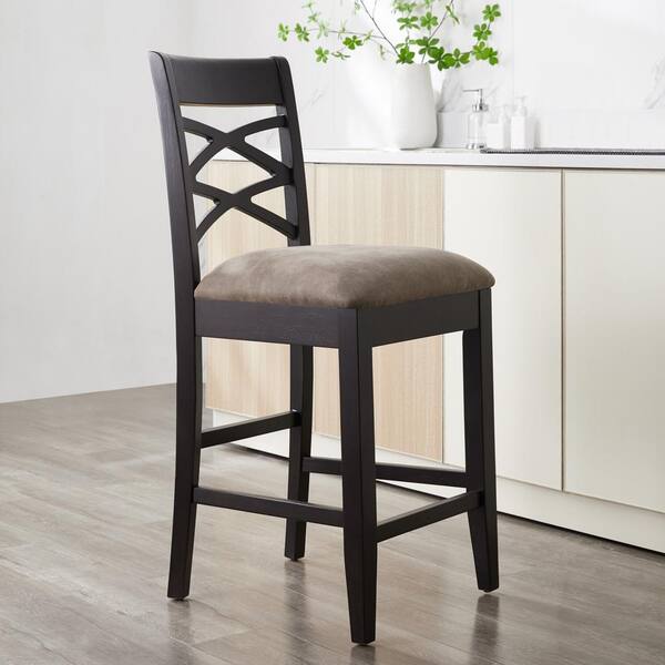 40 in H Wood Double Crossback Black with Dapple Gray Linen Seat Counter Height Stool (Set of 2)