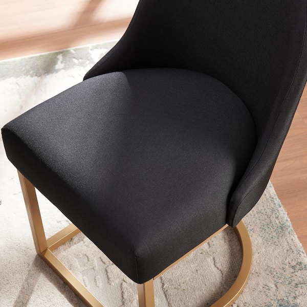 Barrelback Dining Chair with Black Linen Seat and Gold Metal Base, Set of 2