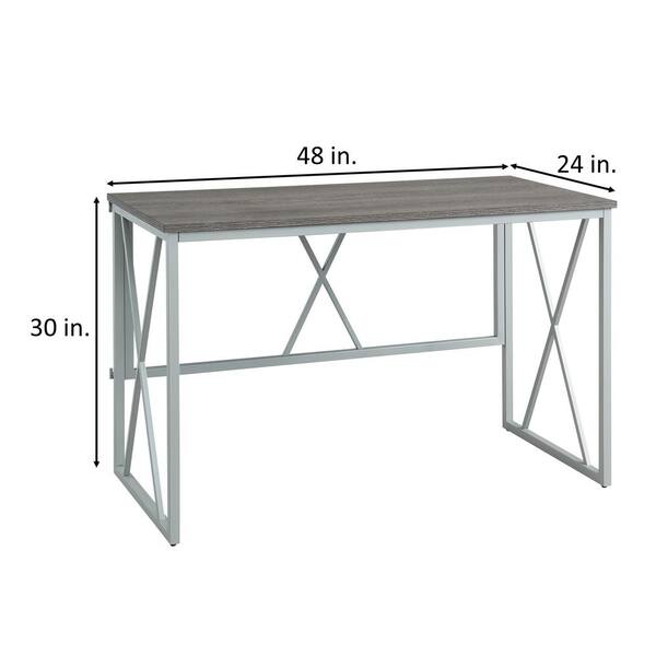 Collapsible 48 in. W Rectangular Weathered Wood and Satin Nickel Writing Desk