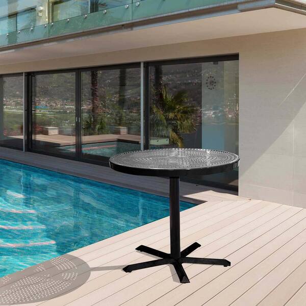 36 in. Black Round Metal Perforated Table with 40 in. Pedestal Base