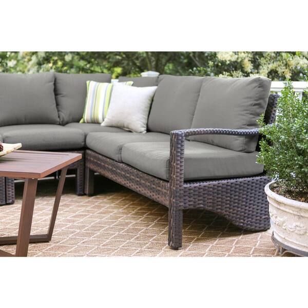 Augusta 5-Piece Wicker Outdoor Sectional with Gray Polyester Cushions