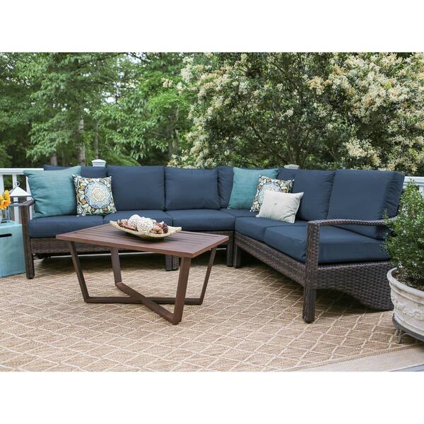 Augusta 5-Piece Wicker Patio Corner Sectional with Sunbrella Navy Cushions