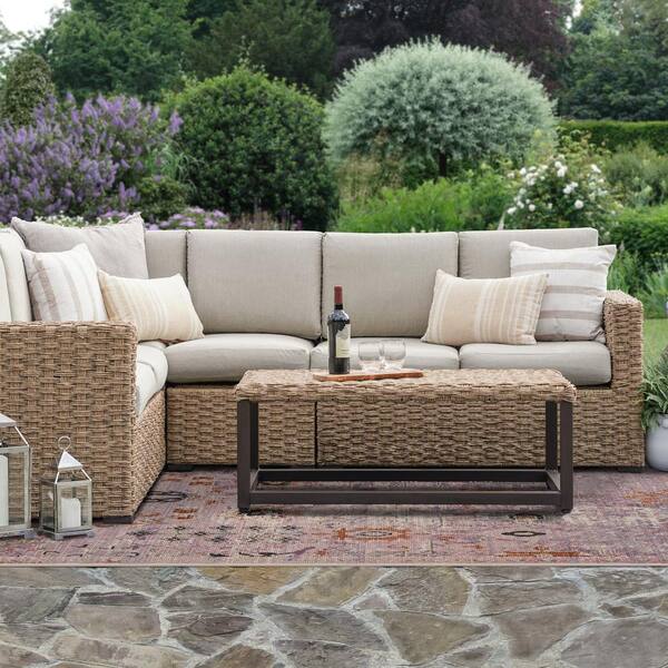 Avalon 5-Pieces Wicker Outdoor Sectional Set with Sunbrella Cast Ash Cushions