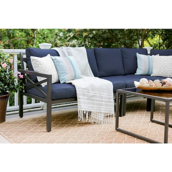 Blakely 5-Piece Aluminum Sectional Seating Set with Navy Polyester Cushions