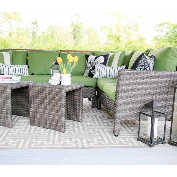 Canton 6-Piece Wicker Outdoor Sectional Set with Green Cushions
