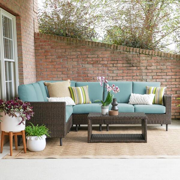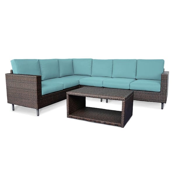 Draper 5-Piece Wicker Outdoor Sectional with Spa Blue Cushions