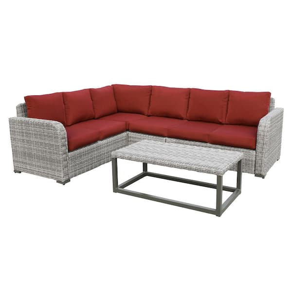Forsyth 5-Piece Wicker Outdoor Sectional Set with Red Cushions