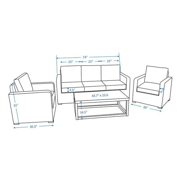 • Includes 3-seat sofa, 2 arm chairs, & 1 coordinating coffee table