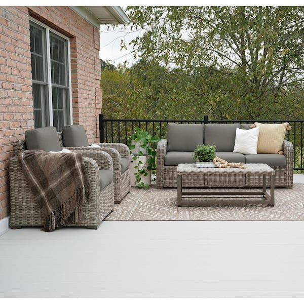Forsyth 6-Piece Wicker Seating Set with Gray Cushions