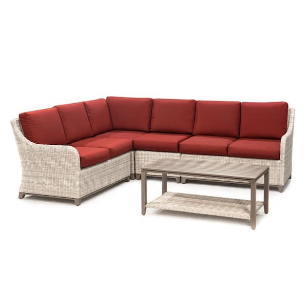 Hampton 5-Piece Wicker Outdoor Sectional with Red Cushions