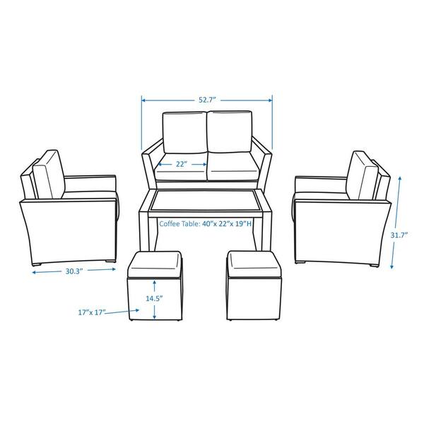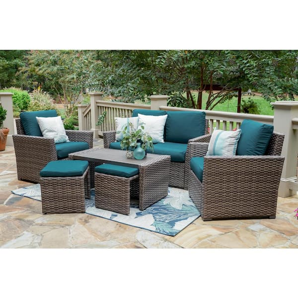 Newton 6-Piece Wicker Patio Conversation Set with Peacock Polyester Cushions