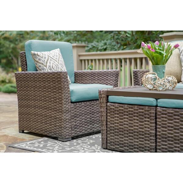 Newton 6-Piece Wicker Patio Conversation Set with Spa Blue Polyester Cushions