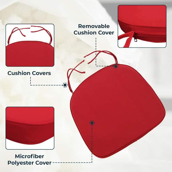15 x 15 in. Memory Foam Chair Cushion with Ties Stay in Place Non Skid Design Removable Cover Machine Washable in Red