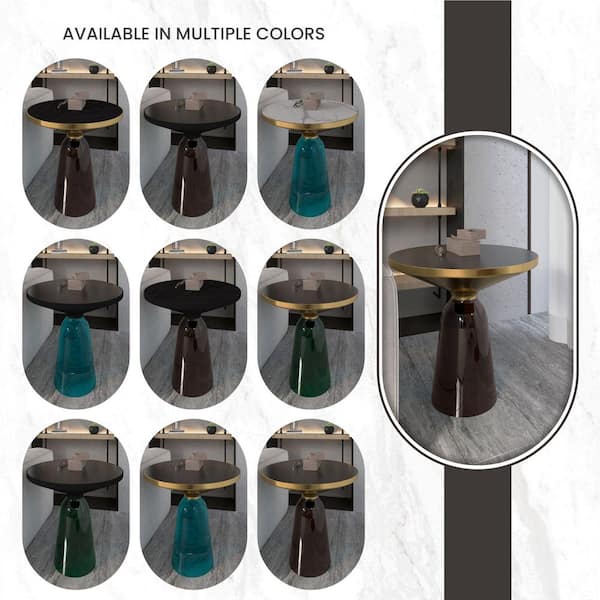 19.68-Inch Round End Table Glass Tabletop Gold Iron Rim Frame Side Table With Glass Pedestal Base in Grey/Black