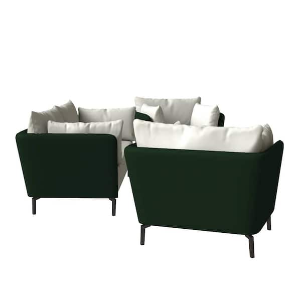 3-Piece Sofa Set Upholstered in PU Leather with Solid Wood Frame Metal Legs Removable Cushions Luxify Series in Green