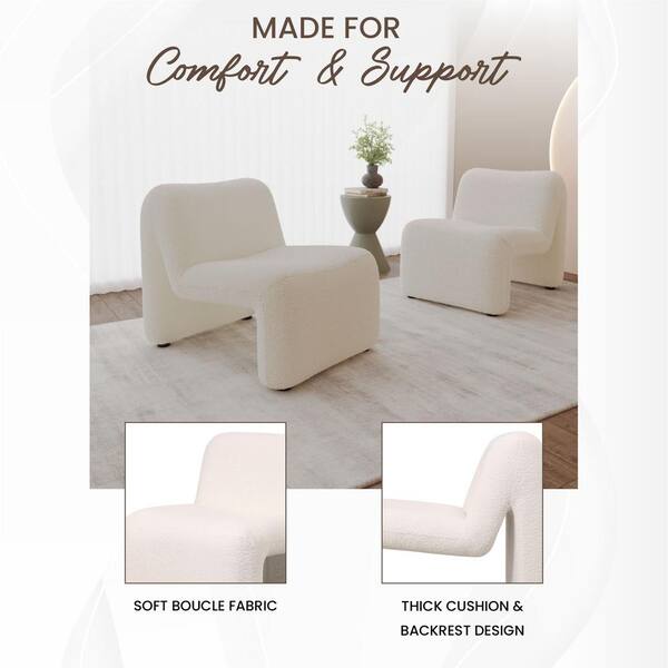 Accent Chair Upholstered in Boucle with Padded Seat and Back Side Chair Waterfall Design No Assembly in White