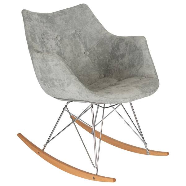 Accent Rocking Chair Upholstered in Polyester Velvet with Ash Wood Dowel Base Curved Back in French Silver/Velvet