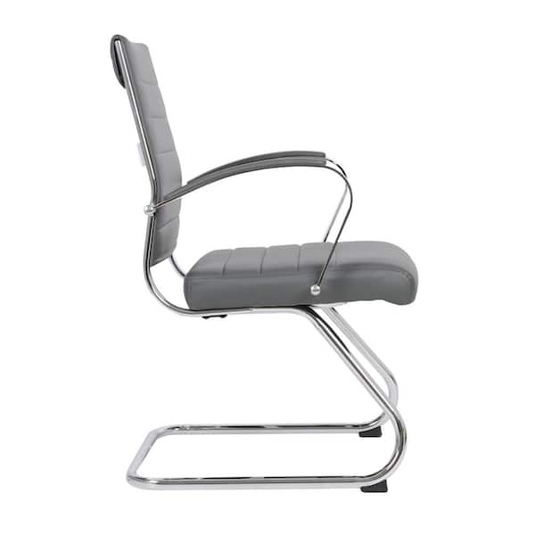 Benmar Office Chair Upholstered in Leather with Stainless Steel Sled Base in Grey