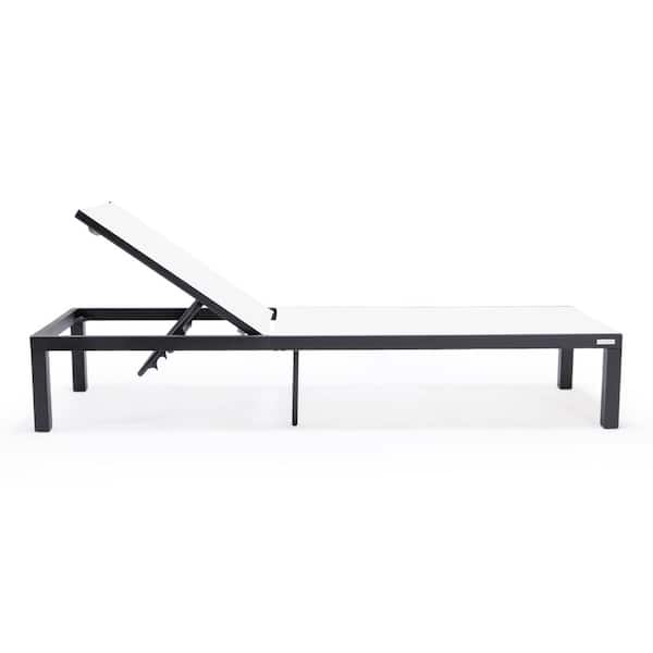Black Powder Coated Aluminum Frame Marlin Modern Patio Lounge Chair Chaise with White (Set of 2)