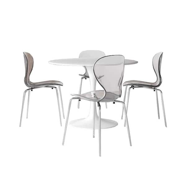 Bristol 5-Piece Dining Set Round White 35 in. MDF Top Dining Table and 4-Stackable Dining Side Chair with in Clear