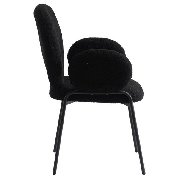 Celestial Boucle Dining Chair Upholstered Seat and Back in Black Powder Coated Iron Frame Set of 2, Black