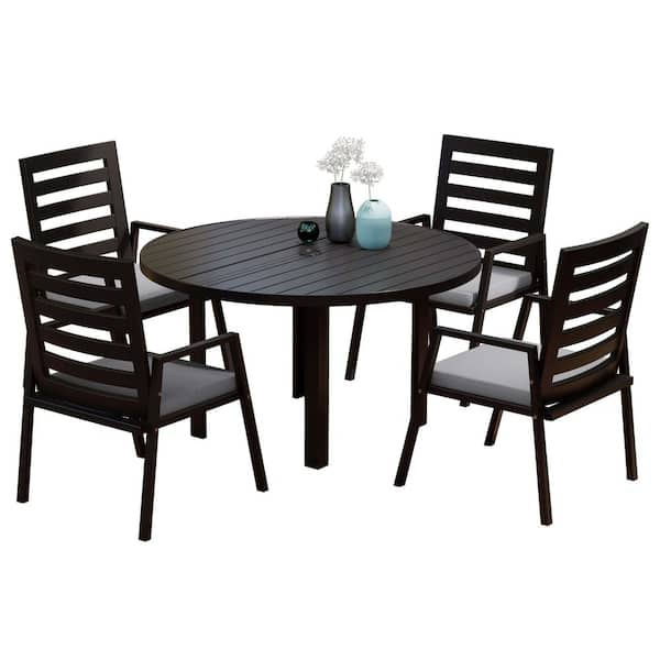 Chelsea 5-Piece Aluminum Outdoor Dining Set with 48 in. Round Table and 4 Dining Armchair w/ Cushions in Light Grey