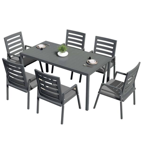 Chelsea 7-Piece Aluminum Dining Set with Rectangular Extendable Table and 6 Dining Chairs with Cushions in Black