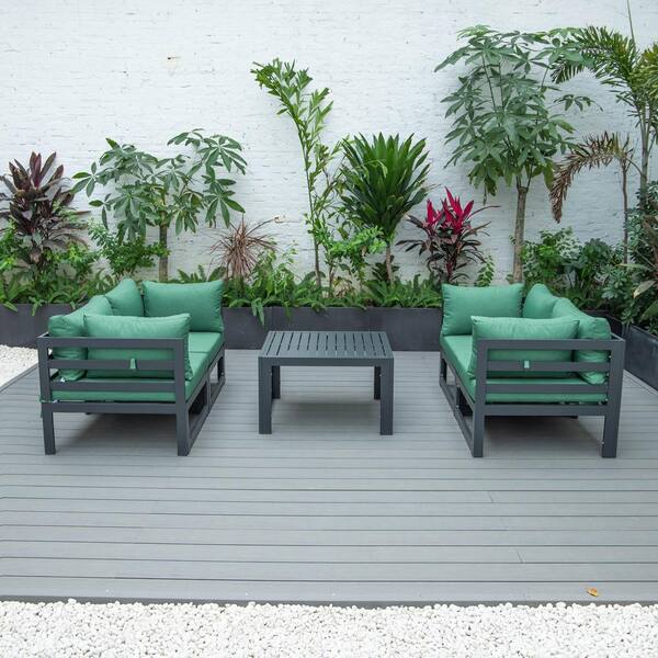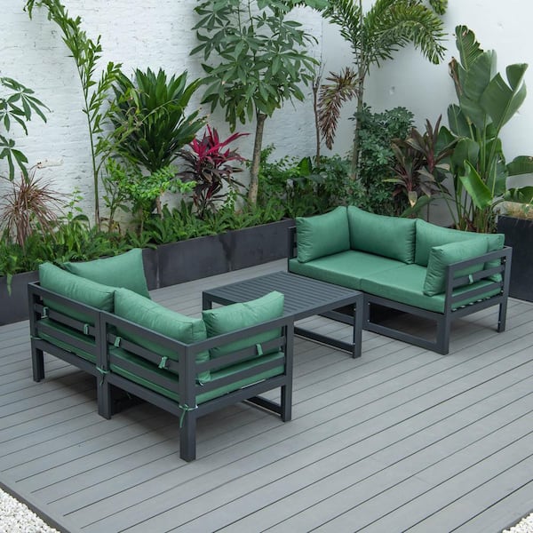 Chelsea Black 5-Piece Aluminum Patio Conversation Set with Green Cushions