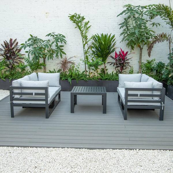 Chelsea Black 5-Piece Aluminum Patio Conversation Set with Light Grey Cushions