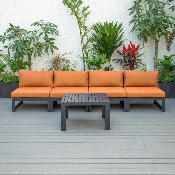 Chelsea Black 5-Piece Aluminum Patio Conversation Set with Orange Cushions