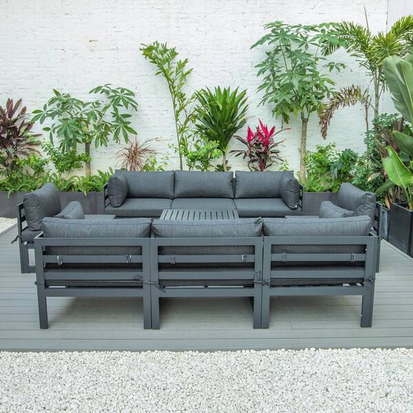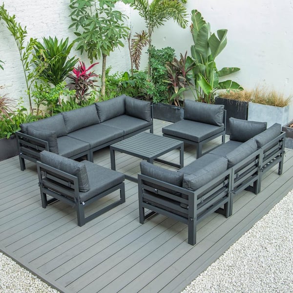 Chelsea Black 9 Piece Aluminum Patio Conversation Set with Black Cushions