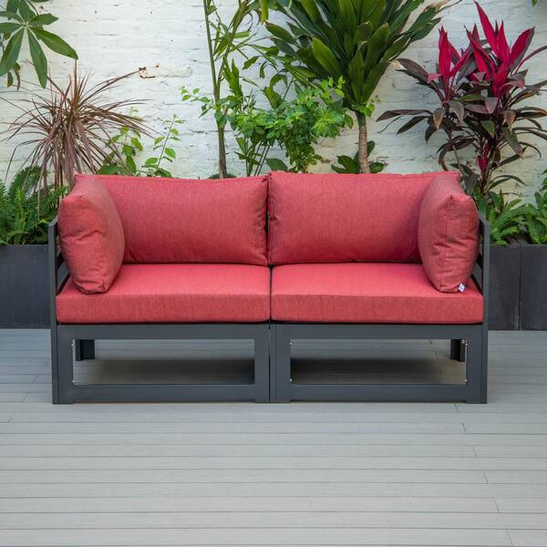 Chelsea Modern Black 2-Piece Aluminum Outdoor Patio Sectional Loveseat with Red Cushions