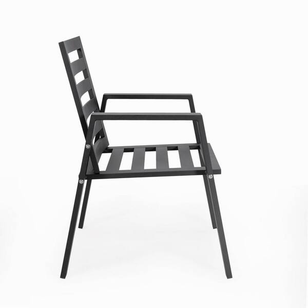Chelsea Modern Patio Dining Armchair in Black Aluminum with Removable Cushions, Cherry Red