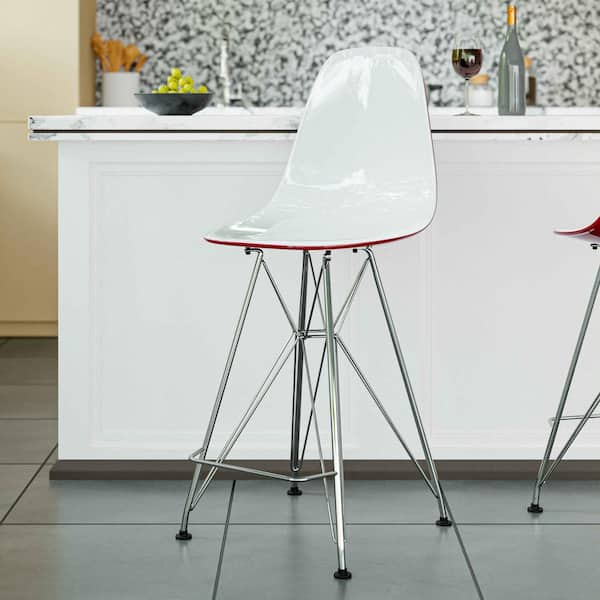 Cresco Modern Acrylic Barstool with Chrome Base and Footrest (White/Red)
