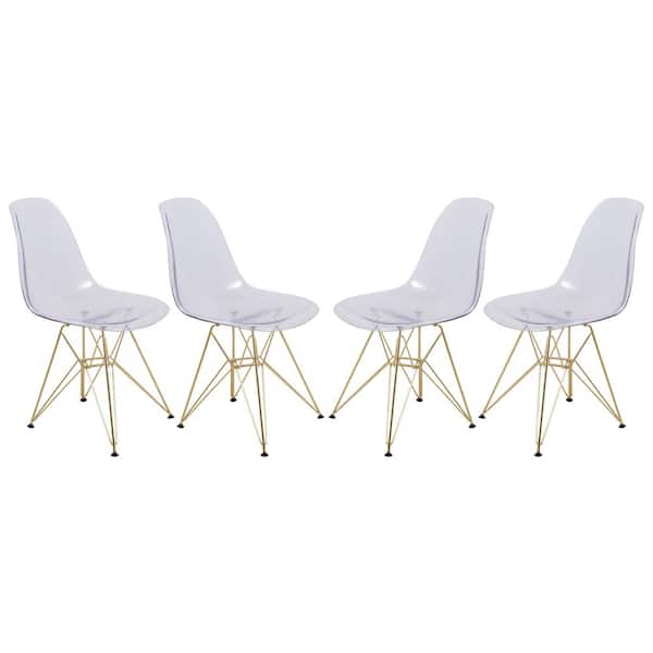 Cresco Modern Plastic Molded Dining Side Chair with Eiffel Gold Legs Clear (Set of 4)