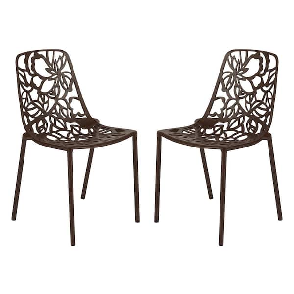 Devon Outdoor Dining Chair in Aluminum Modern Stackable Design Patio Side Chair in Brown (Set of 2)