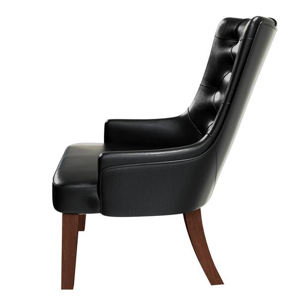 Dining Chair Upholstered Leather Diamond-Tufted High Back Design and Rubberwood Legs Spruce Collection (Charcoal Grey)