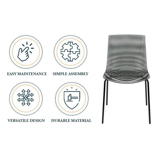 Dining Chair for Dining and Kitchen Room Stackable Chair in Stainless Steel Base Astor Set of 4 in Transparent Black