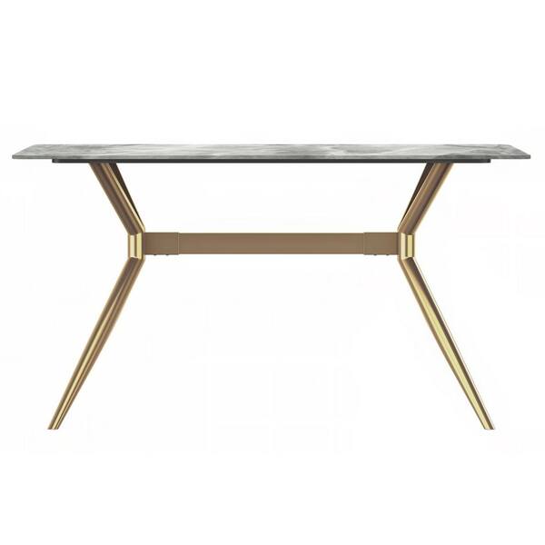 Elega Modern 62 in. Rectangular Dining Table with Sintered Stone Top Gold Stainless Steel 4-Legs in Light Grey, Seats 6