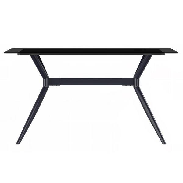 Elega Modern Dining Table 62 in. Glass Rectangular Top and 4 Legs Stainless-Steel in Black Seats 8