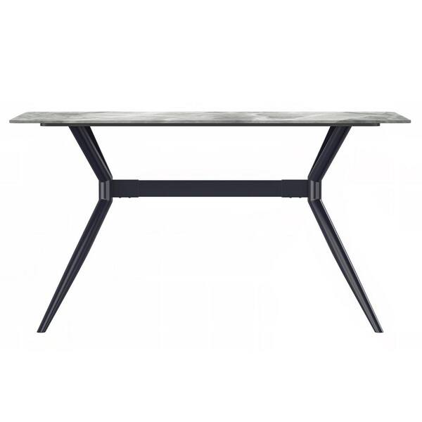 Elega Modern Dining Table 62 in. Sintered Stone Rectangular Top and 4-Legs Stainless-Steel in Light Grey Seats 8