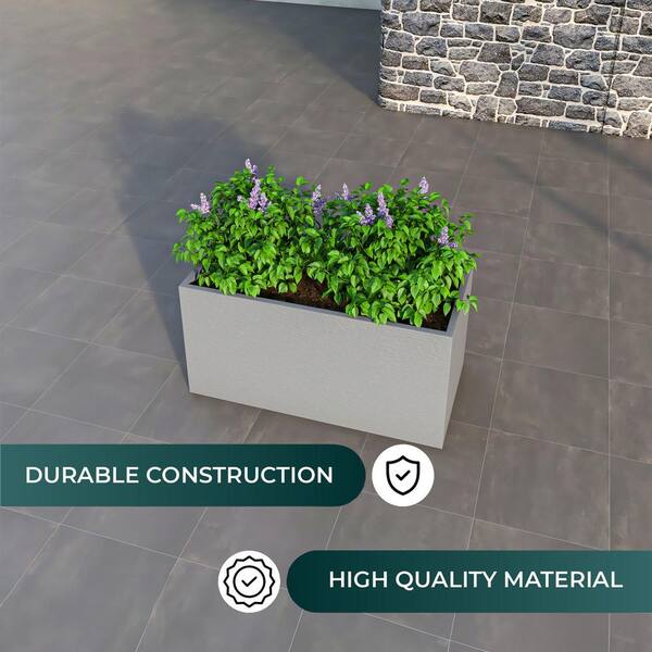 Flora Indoor and Outdoor Rectangular Fiberstone Planter Pot Modern Weather Resitant Design in Grey (36 in. Wide)