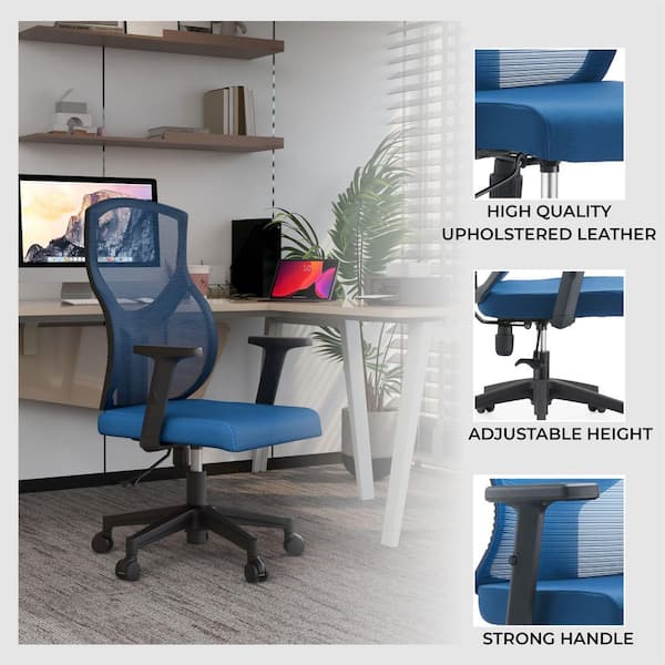 Glen Cotton Office Chair Mesh Mid-Back Computer Chair with Adjustable Height, Swivel and Tilt in Blue
