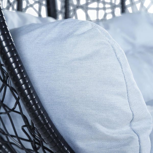 Hanging Metal Porch Swing Chair in Black Stainless Steel Frame with Cushions Recluse Collection in Light Grey