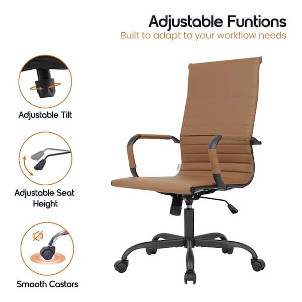 Harris High Back Leather Desk Swivel Armrests Modern Adjustable Executive Conference Chair (Light Brown)