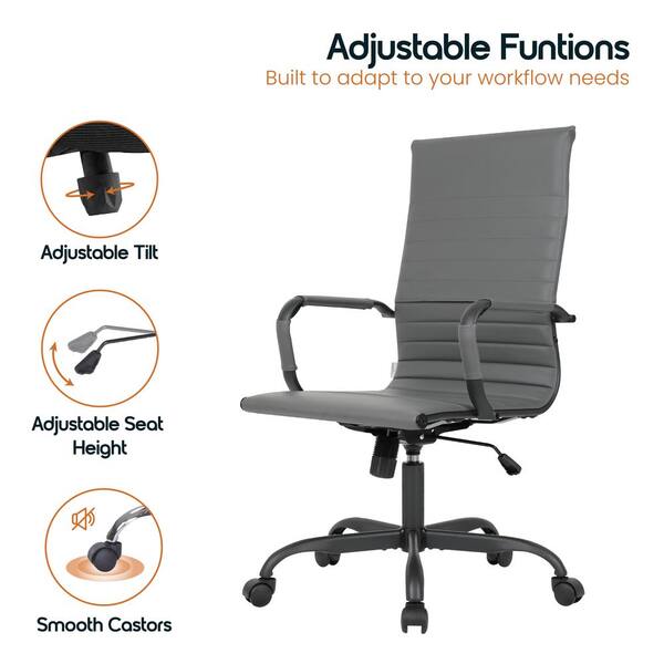 Harris High Back Leather Desk Swivel Armrests Modern Adjustable Executive Conference Chair for Office and Home (Grey)
