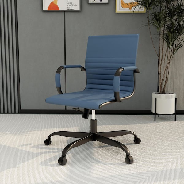 Harris Leather Desk Swivel Armrests Modern Adjustable Executive Conference Chair for Office and Home in Blue