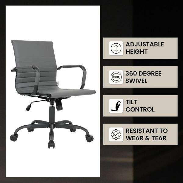 Harris Leather Desk Swivel Armrests Modern Adjustable Executive Conference Chair for Office and Home in Grey