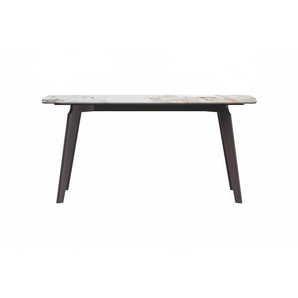 Krevor Series Modern White Grey Stone 62 in. Rectangular Wide Tabletop and 4 Legs Black Steel Dining Table Seats 6