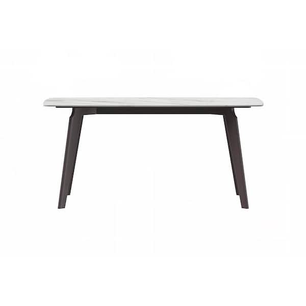 Krevor Series Modern White Stone 62 in. Rectangular Wide Tabletop and 4 Legs Black Steel Dining Table Seats 6